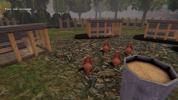 Interesting premise for a game, decent visuals, but the game is unfortunately unplayable, because when you go to the barn to get the food, the "E" key glitches and it doesn't allow me to pick up the food. The rest of the interaction is just click the button, but you have to press "E" to get the food and it doesn't do that.